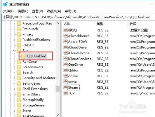 接下来我就教大师怎么利用注册表节制电脑的开机启动项,大师按下面的地址一次打开文件夹HKEY_CURRENT_USER\Software\Microsoft\Windows\CurrentVersion\Run,如许就可以看到电脑的开机启动项了。