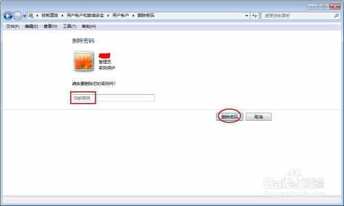 第七步:在删除密码界面,输入原密码,单击“删除密码”即可。