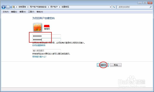 第三步:输入要设置的密码,2遍,单击“建立密码”。