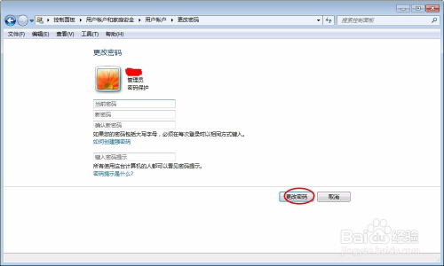 第六步:进入更改密码界面,输入原密码和新密码,单击“更改密码”按钮即可。