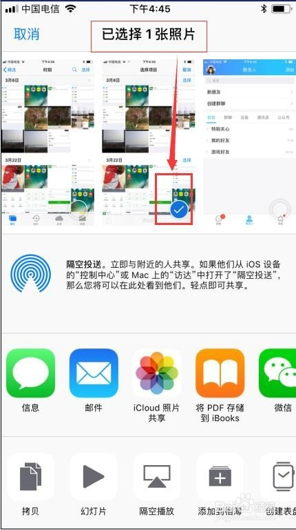 若是一次要发送多张照片,可以在选择照片时一次性选中;