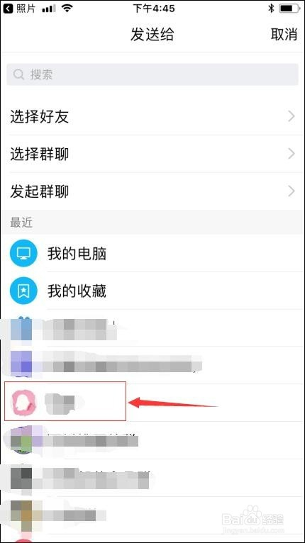 选择你想发送照片给她的老友;