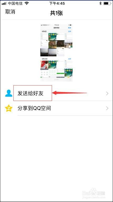 然后点QQ,选择发送给老友;