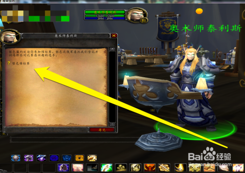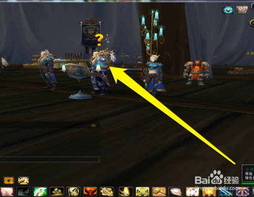 进入帐篷后,看到三个血精灵。此中一个血精灵脑壳上有问号,这个带问号的是交使命的人物。