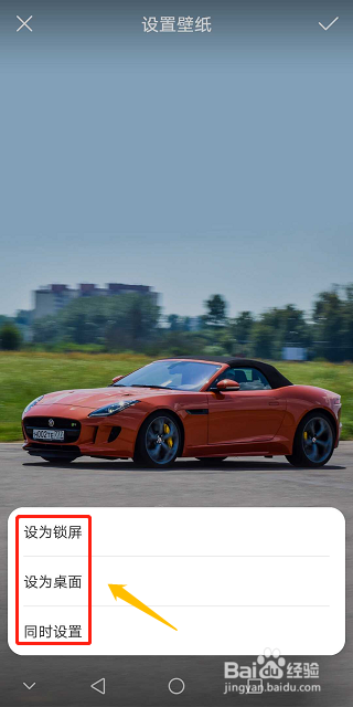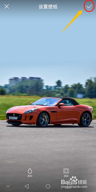 接着在设置壁纸页面的右上角是一个对号图标,点击今后我们可以将其设置为桌面壁纸也可所以锁屏壁纸,如下图;