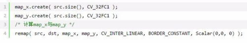 remap(srcImage, dstImage, map_x, map_y, INTER_LINEAR, BORDER_CONSTANT, Scalar(0, 0, 0));
