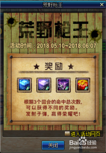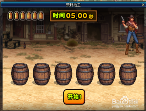 进入【希尔镇】后,找到NPC【江戈】,点击后选择【起头】即可进入射击小游戏。或者用鼠标右键单击【枪王的枪弹】,即可直接打开游戏界面。