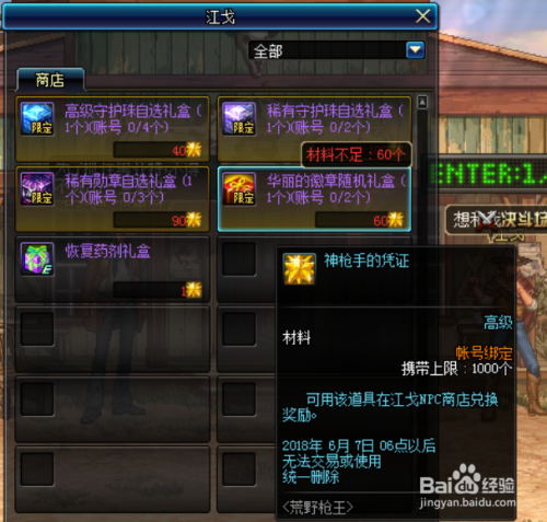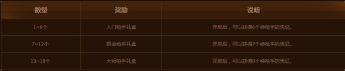 当【神qiang手的凭证】数目累计到必然量时,可以利用【神qiang手的凭证】在【江戈】NPC商铺兑换奖励。