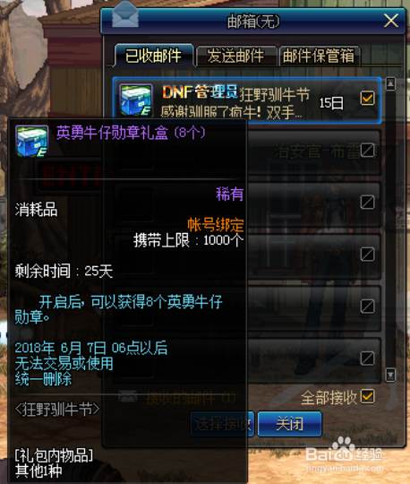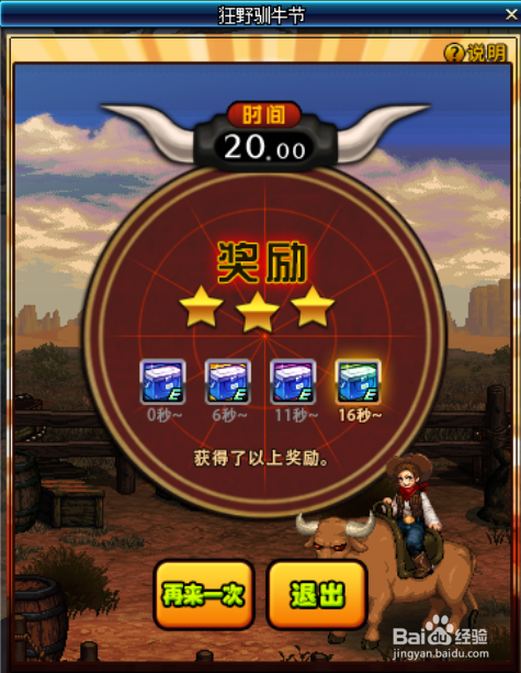 按照玩家对峙节制牛的时候,获得的奖励如下所示,礼盒道具会经由过程邮箱发送给玩家,请注重打开邮箱进行查收。