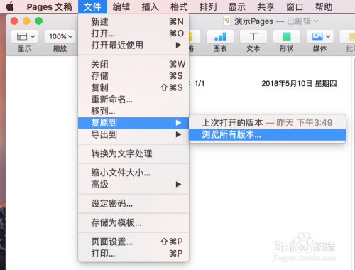 我们经常需要对文稿进行点窜,昨天点窜一点,今天点窜一点,可能明天点窜时又感觉前天的版本有些内容不该该点窜的,又想恢复。总之,我们应该对Pages文稿进行版本办理,以便我们更便利的处置文稿。
