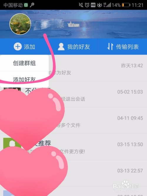 5、若是想要分享给已有老友,那么找到你的老友,点击老友头像,之后可以看到老友页面的最下方有分享文件选项。