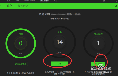登录我们的账号之后这里需要先点击游戏加快下面的优化,还有电脑碎片清算。