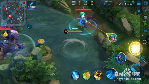 当我们发现敌方英雄进入到了宫本武藏的年夜招规模内,我们按住年夜招,快速的拖动到你想要年夜到的敌方英雄的头像上,同样,对方身上会有一道红色的竖光,暗示你已经选中了对方,然后松开手指,宫本武藏就会跳到你所选的人身上。如下图。