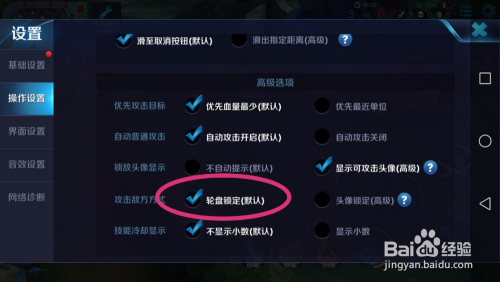 然后,在设置页面里选择操作设置,找到“轮盘锁定”,然后选中。如图,红圈所示。