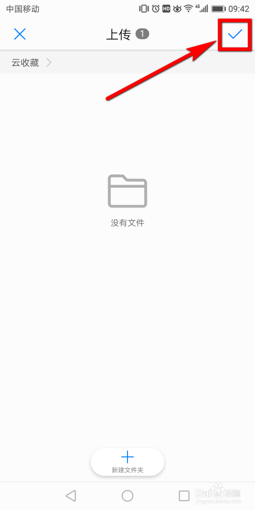 点击上传今后,我们可以看到一个文件夹,若是你有多个文件夹的话在该页面中可以选择一个文件夹,若是没有文件夹的话那么就可以新建一个文件夹。然后点击页面右上位置的【√】符号。