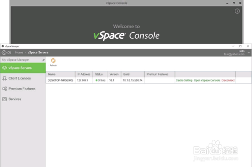 起头利用vSpace节制台: vSpace节制台窗口主动弹出; 桌面上呈现“vSpace Console”和“vSpace Manger”快捷体例图标;单击“Connect”按钮。