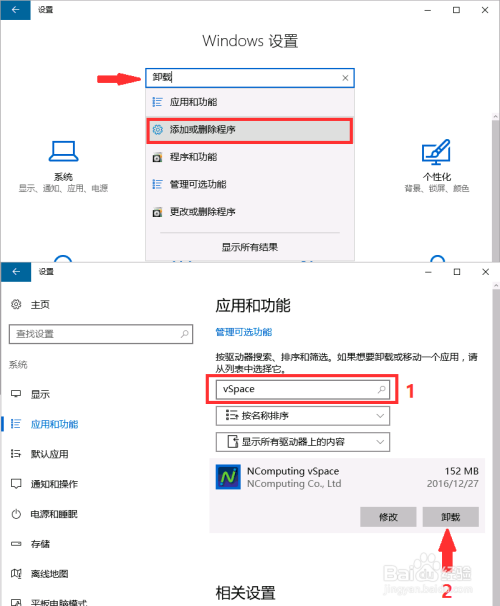 打开开始菜单» 设置,输入“卸载”,单击选择“添加或删除法式”