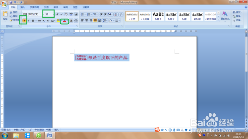 选中文字,设置字号,字体颜色和加粗等内容,如图。