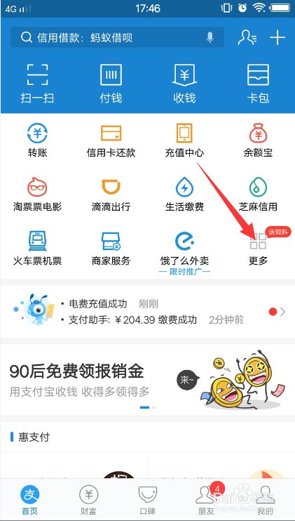 打开付出宝,点击更多。