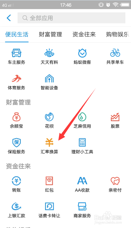 找到财富办理里面的汇率换算,点击进入。