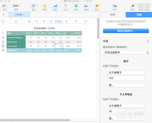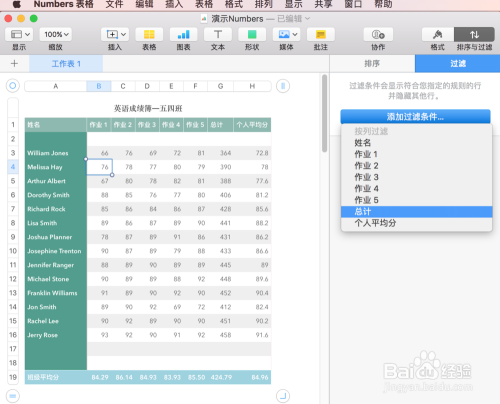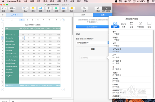 当Numbers表格中有年夜量数据时,我们往往需要过滤功能仅显示我们感乐趣的数据,好比我们可以从全校成就表中过滤出某一班的成就数据。下面就来介绍Numbers表格如何过滤数据。