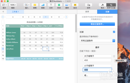 再填写前提数值450,点击键盘上的return键,便将过滤出匹配法则的数据: