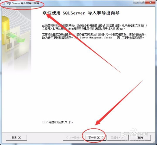 SQL Server导入和导出标的目的导窗口中,单击下一步按钮。