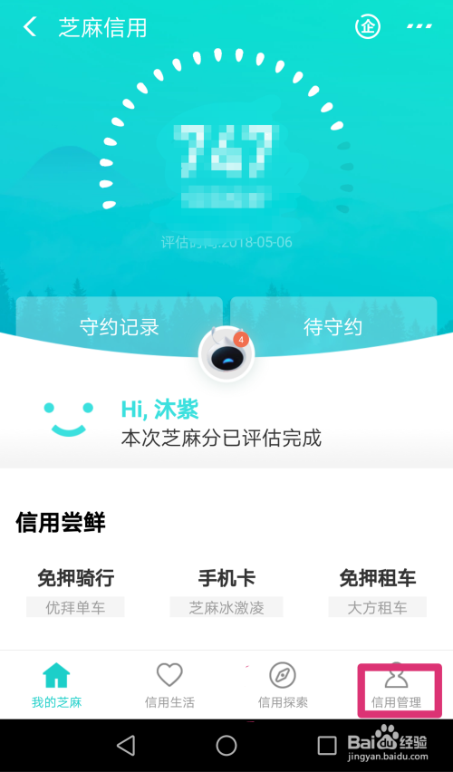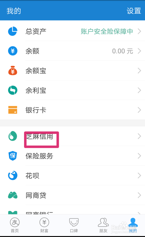 点击【芝麻信用】