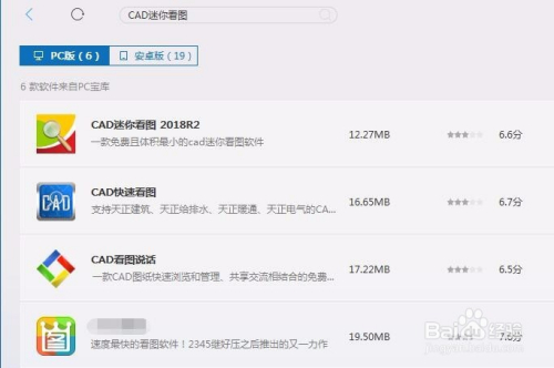 可是这个软件其实是太年夜了,有6G多,要下载好久,所以这里我们取巧,只需下载一个dwg图纸查看软件就可以了。在电脑管家中搜刮CAD迷你看图下载安装。