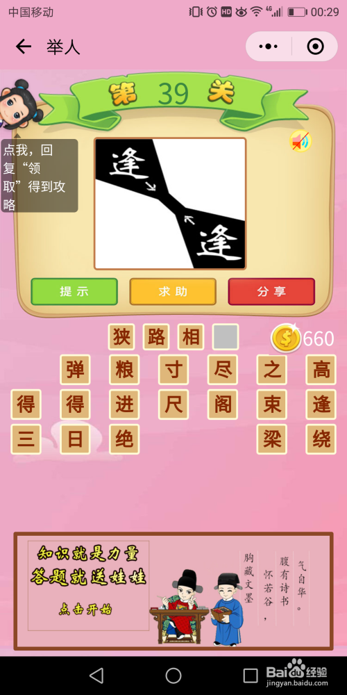 举人第37关,这关应该不难吧,我这里就不诠释了,直接上谜底【齐心合力】。