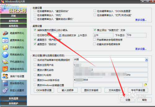 点击系统优化,然后鄙人拉菜单中的点击此中的系统个性设置。如下图。