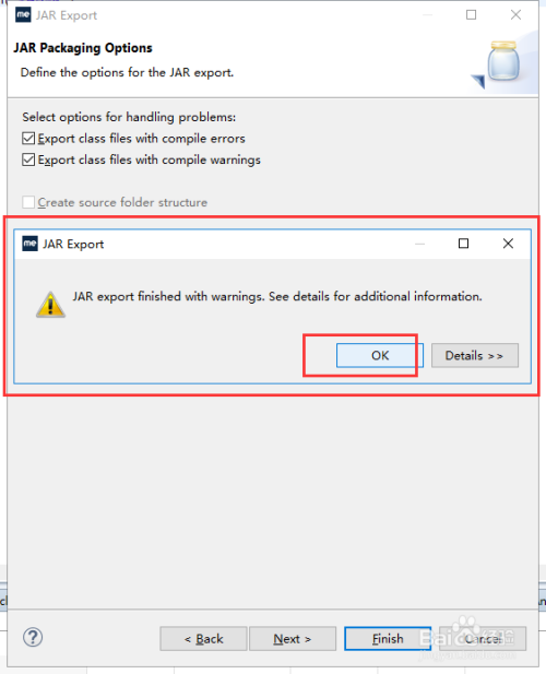 7. 弹出下图所示的【Jar Export】,选择ok即可。