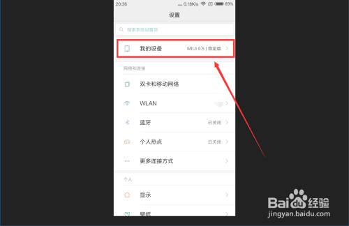接着,我们在红米手机设置页面找到“我的设备 ”按钮,点击进入到红米手机我的设备页面 。
