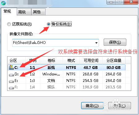 当点击系统分区后在左侧会进行勾选,这个时辰我们在确定就可以了,若是双系统都需要备份那也只能一个分区一个分区来进行,不克不及同时选择两个区分进行备份或者还原。