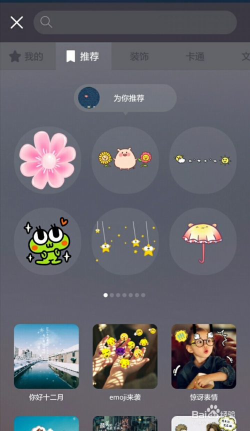 同样贴纸也是如许利用,点击你喜好的贴纸进行利用装饰,最后一张美美的相片就出来了,最后就可以发布了