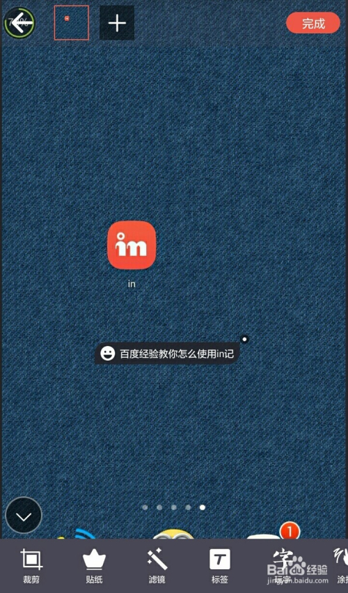 点上面的“in记”的字,右下角会有一个相机的小图,点击这个就可以摄影了,除了摄影你还可以从手机相册里面进行图片装饰