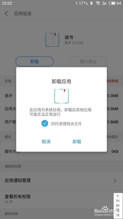 找到需要卸载的系统应用,这里以念书为例,打开后如下图所示