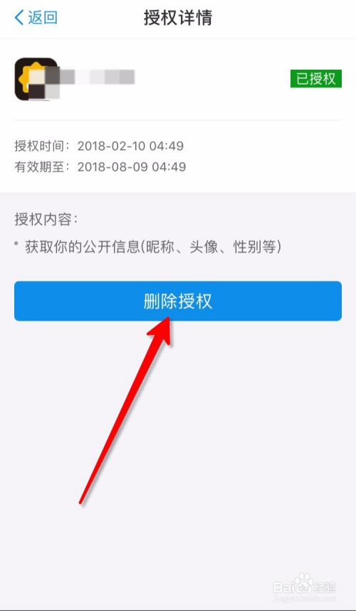 在(授权详情)的界面,需要点击箭头指标的目的的(删除授权)。