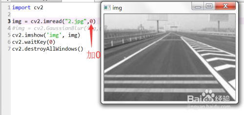 而若是在读入图片后方,加0,则暗示读取灰度图像,运行后结果如下图,良多对图片的操作,都是针对这种类型。