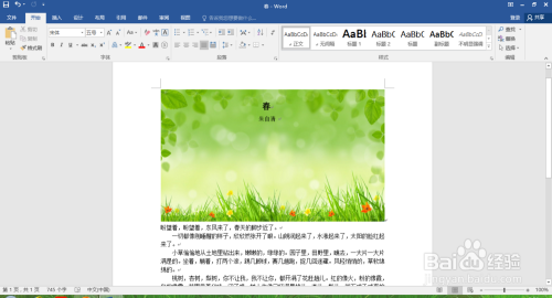 在文本框中输入文字“春 朱自清”,选择字体大小并调整好位置,然后点击菜单栏上面的“外形填充”-“无填充颜色”