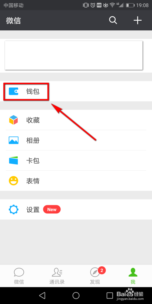 首先到微信下图所示的页面,并在页面中点击【钱包】。