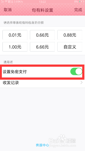 句有料设置的页面,开启免密付出,可以不需要密码就直接发出动静,主动付钱,不外跨越十块钱就需要密码了。