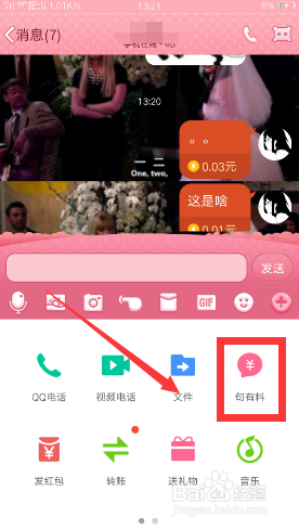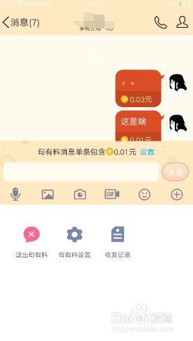 然后就进入了句有料模式,只要你发的每一句话,就带有钱数。