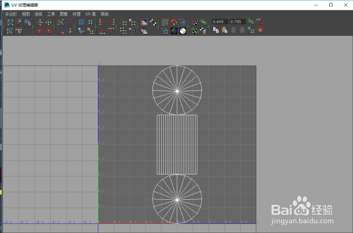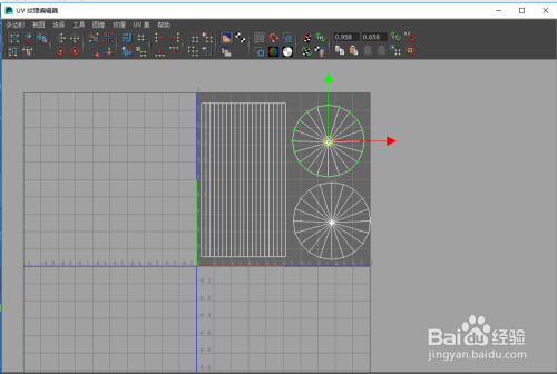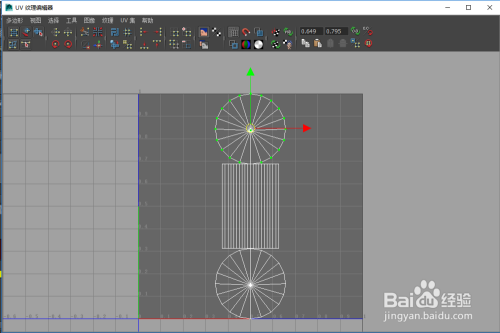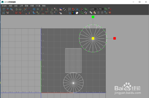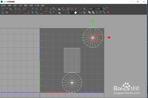 英文输入法下输入【R】即可变换为缩罢休柄,同样左击点住缩罢休柄中间处拖动实现uv缩放。