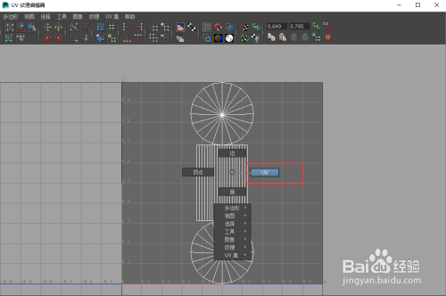 对着uv鼠标右击按住不动拖拽选择uv模式。