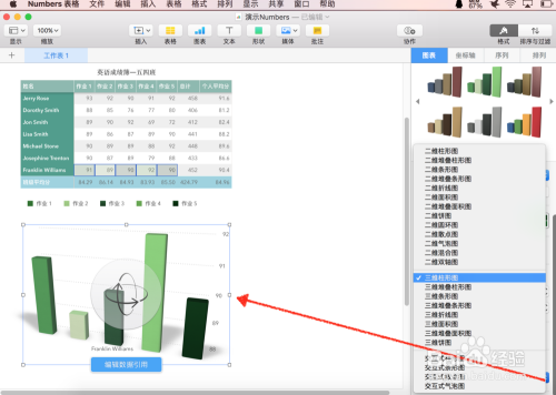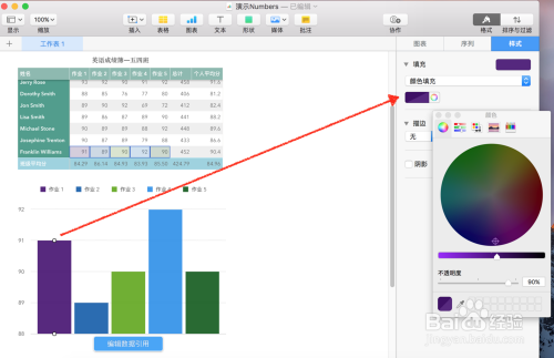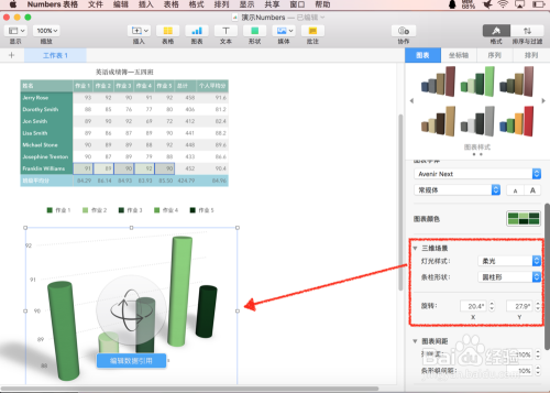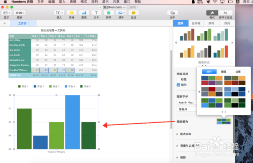 颠末点窜图表的颜色、大小、外形等等操作之后,更改后的Numbers图表的外不雅将呈现令你对劲的结果。