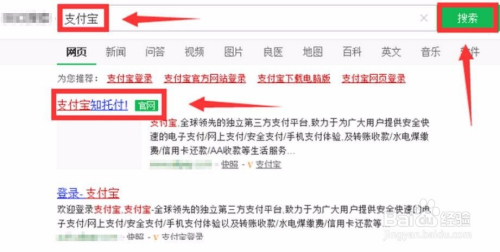 首先打开百度,然后在百度搜索框中输入付出宝,进入付出宝官网