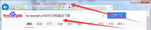 打开百度搜刮引擎,在地址栏输入hp laserjet p1007打印机驱动下载,hp laserjet p1007为本人的打印机型号。