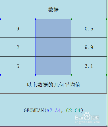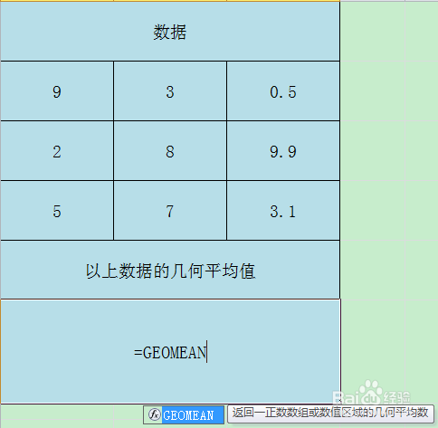 步调一:在指定单位格输入函数公式,即 =GEOMEAN;输入过程中,Excel会主动提醒函数功能;