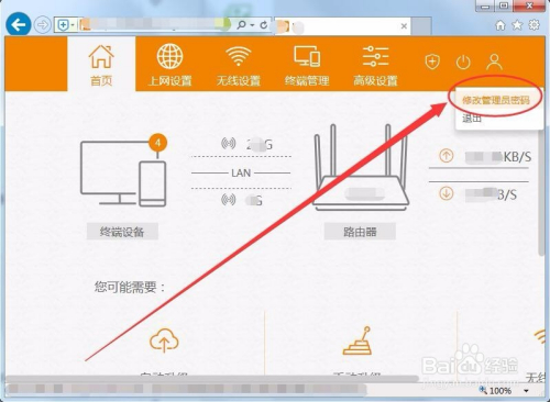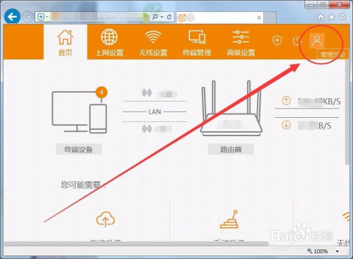 进入路由器设置页面后,选择右上方的办理员设置选项。